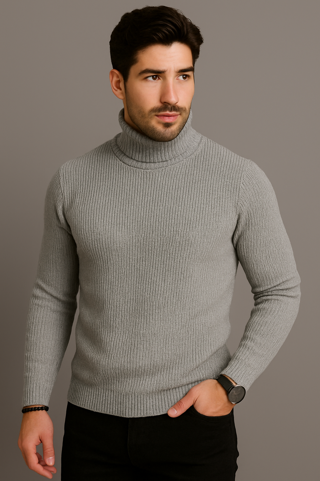 Με Ιταλικό γκρι πλεκτό μαλλί.