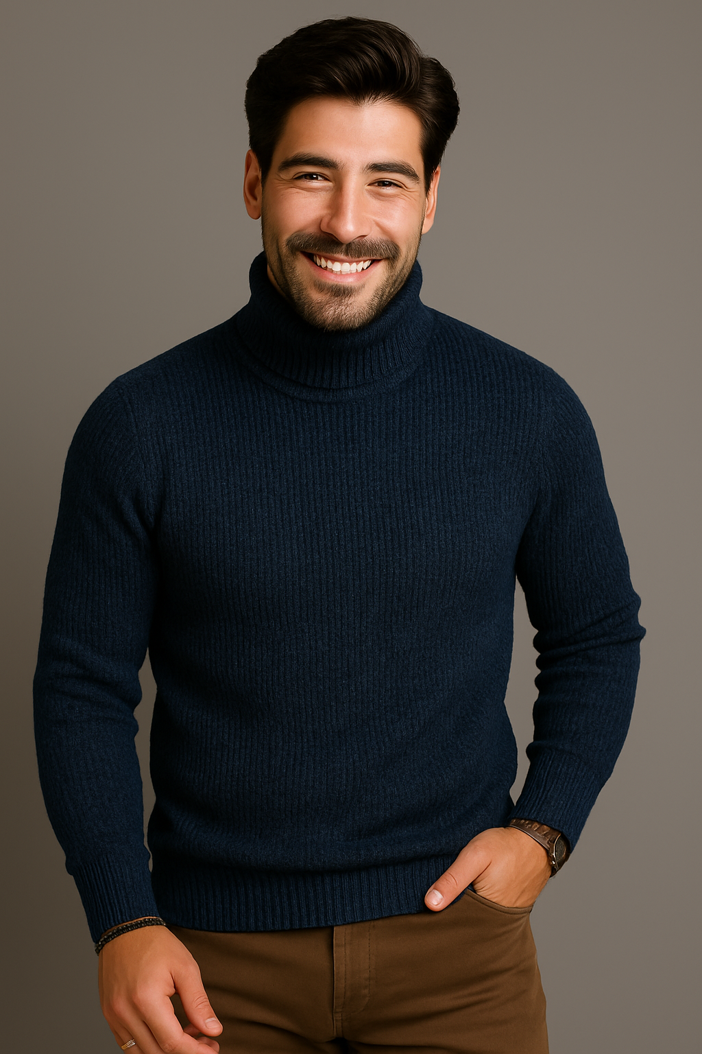 Με Ιταλικό μπλε πλεκτό μαλλί.