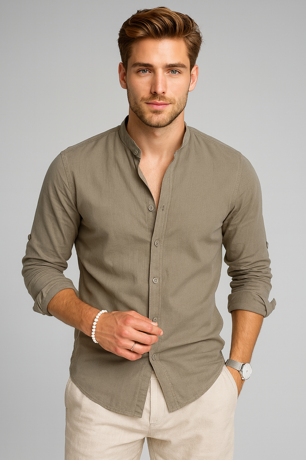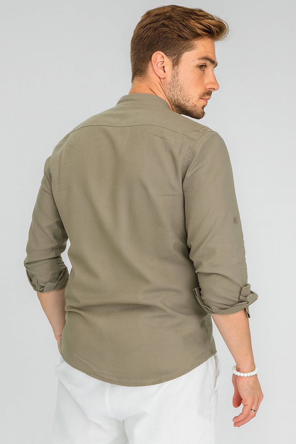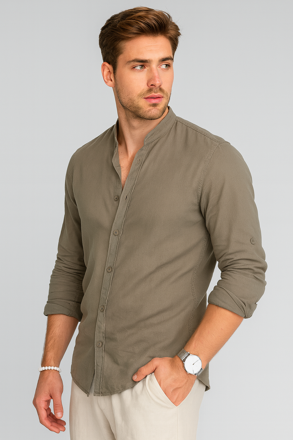 Με Ιταλικό ύφασμα, μάο γιακά και κλείσιμο με κουμπιά.