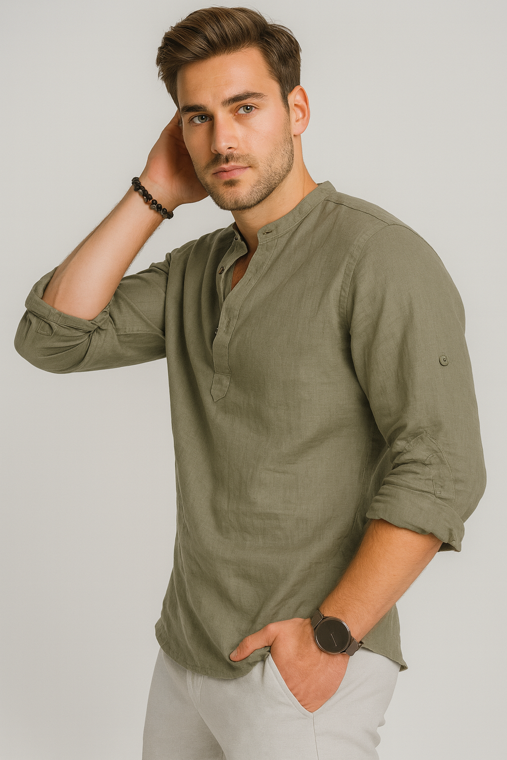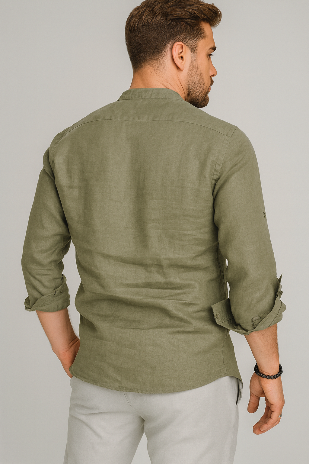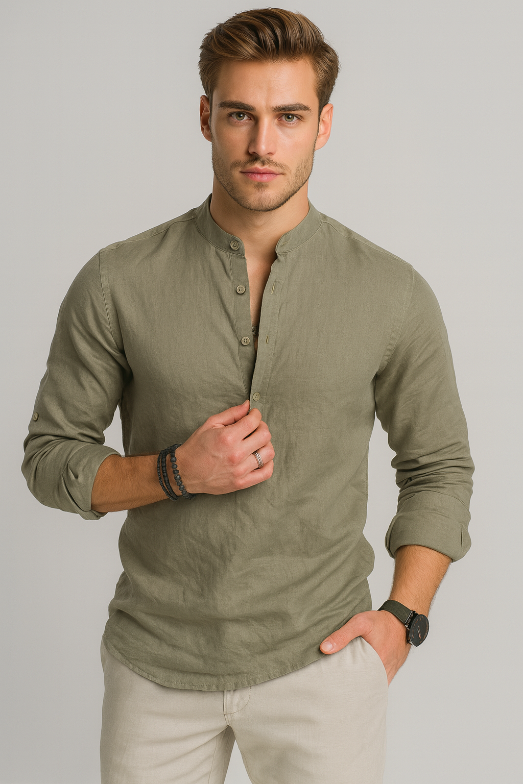 Με Ιταλικό ύφασμα, μάο γιακά και κλείσιμο με κουμπιά.