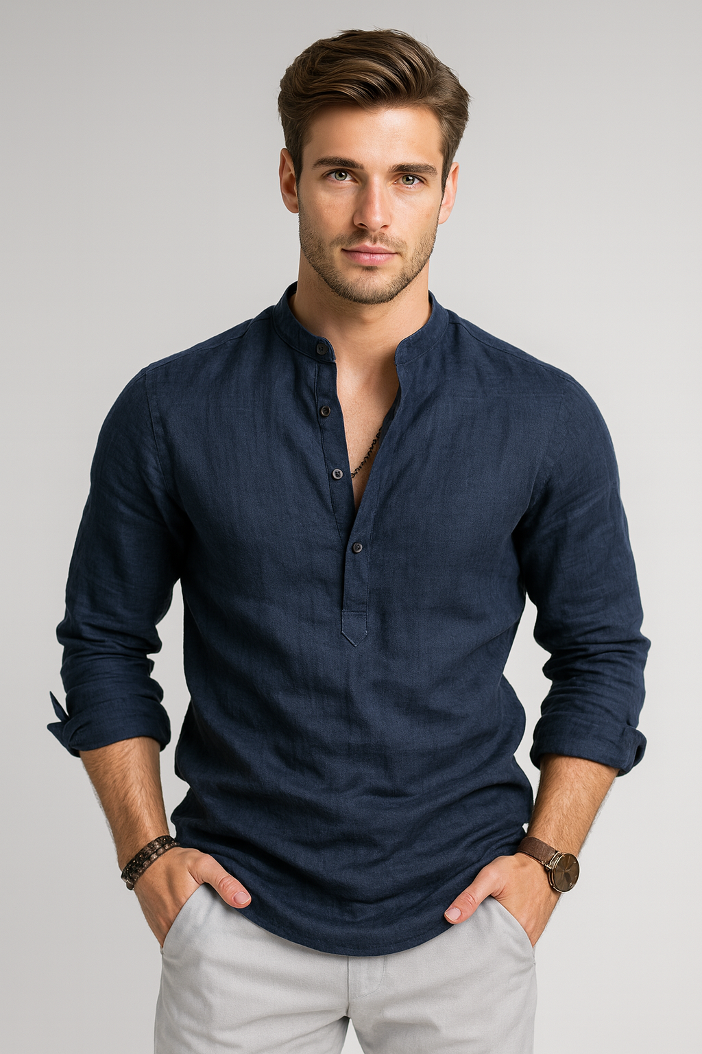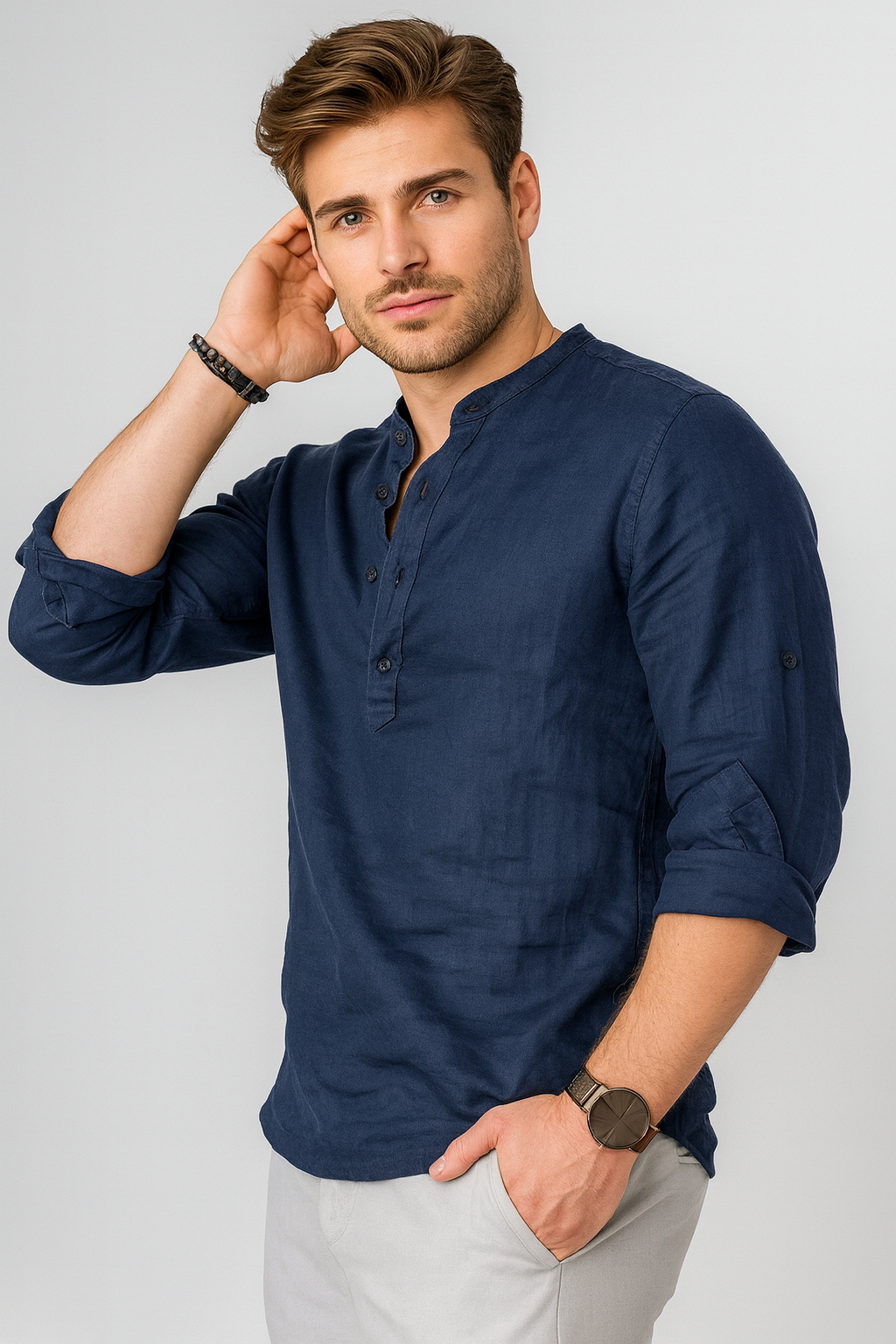 Με Ιταλικό ύφασμα, μάο γιακά και κλείσιμο με κουμπιά.